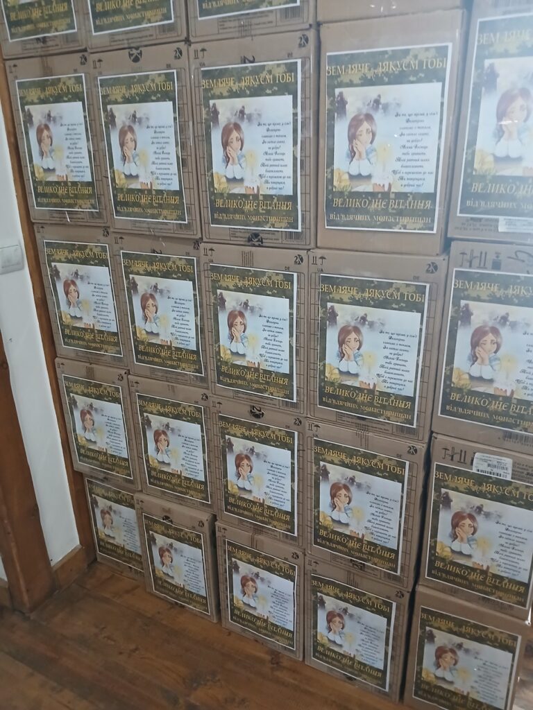 Передвеликодня приємна метушня в музеї припинилася: посилки нашим землякам на фронт склали , освятили, відправили. Наші воїни отримали Великодні привітання з рідних Монастириськ. Дякуємо усім людям доброї волі, хто долучився до цієї благородної справи, адже ми передали не просто Великодні смаколики, ми передали тепло рідного дому, запевнення, що монастирищани не забувають своїх Героїв і щиро діляться з ними частиною свого Великоднього столу. Це не про їду, це про повагу та вдячність. Тому дякуємо всечесним отцям та парафіянам усіх Монастириських церков (особливо отцю Володимиру Шуляру за постійну підтримку) , діткам, які ярмаркували та писали писанки для воїнів, організаціям, працівникам музейного комплексу «Лемківське село», усім людям доброго серця, хто не пройшов повз.